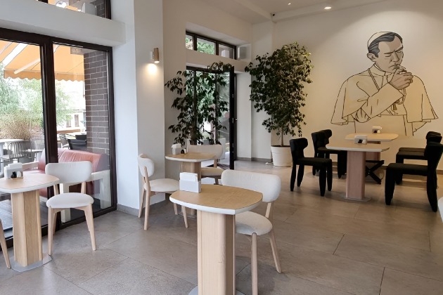 Pepe Cafe — это небольшая кофейня во Владикавказе, которая имеет красивый минималистичный интерьер и продуманное меню. Светлый просторный зал с большими окнами, мягким освещением и акцентами из дерева делает атмосферу лёгкой и уютной. На стене — узнаваемый графичный рисунок, ставший визитной карточкой заведения. Летом гости выбирают просторную террасу под навесом с живыми растениями: здесь можно и позавтракать, и провести вечер за бокалом вина.